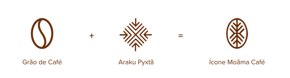 Símbolo: Um grão de café estilizado com influências da arte Guarani, construído por curvas simétricas e linhas geométricas, representando o ciclo da vida, o ritual e a conexão espiritual. A forma geométrica simula as marcas dos passos da ave saracura, considerada símbolo de conexão com a natureza, sensibilidade e proteção.